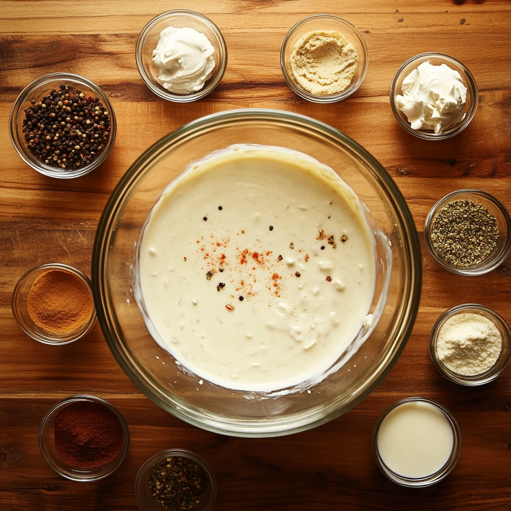 In a large mixing bowl, stir together the cream of chicken soup, sour cream, milk, garlic powder, onion powder, salt, and black pepper. The goal here is to create a smooth, creamy sauce that will hold all the other ingredients together. Give it a quick taste and adjust the seasoning if needed—you want this to be flavorful since it forms the foundation of the dish.