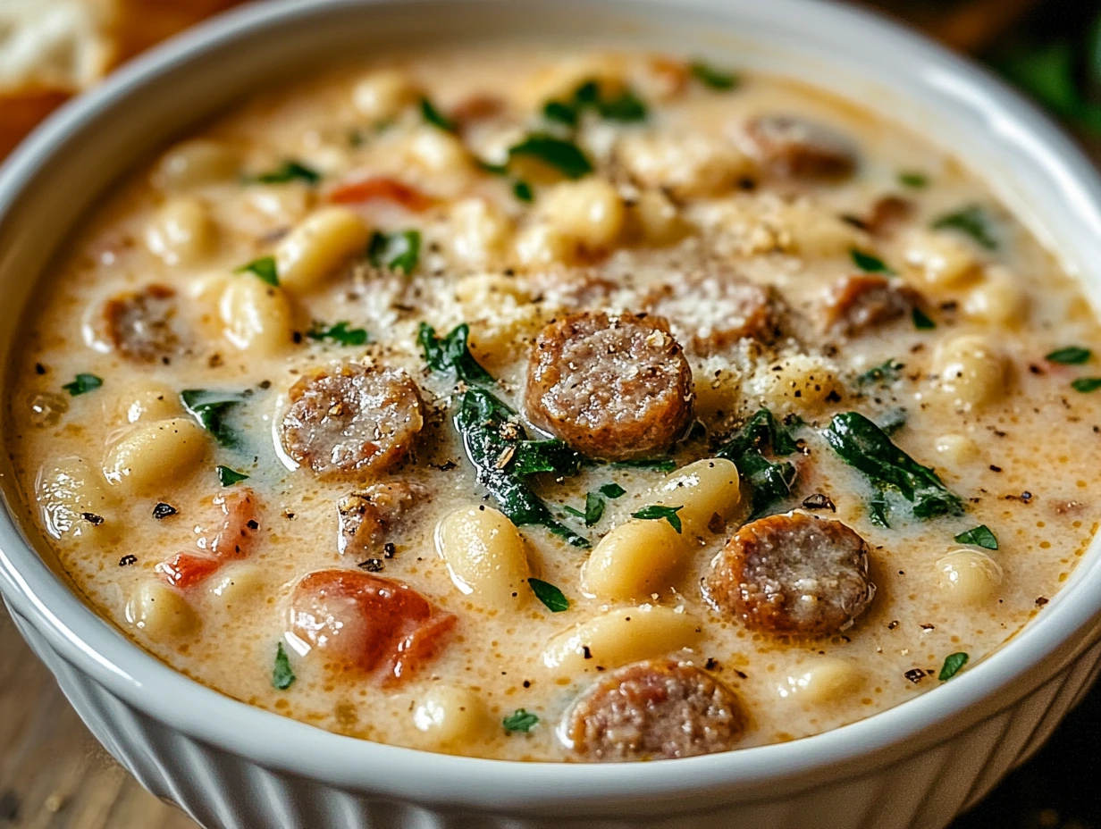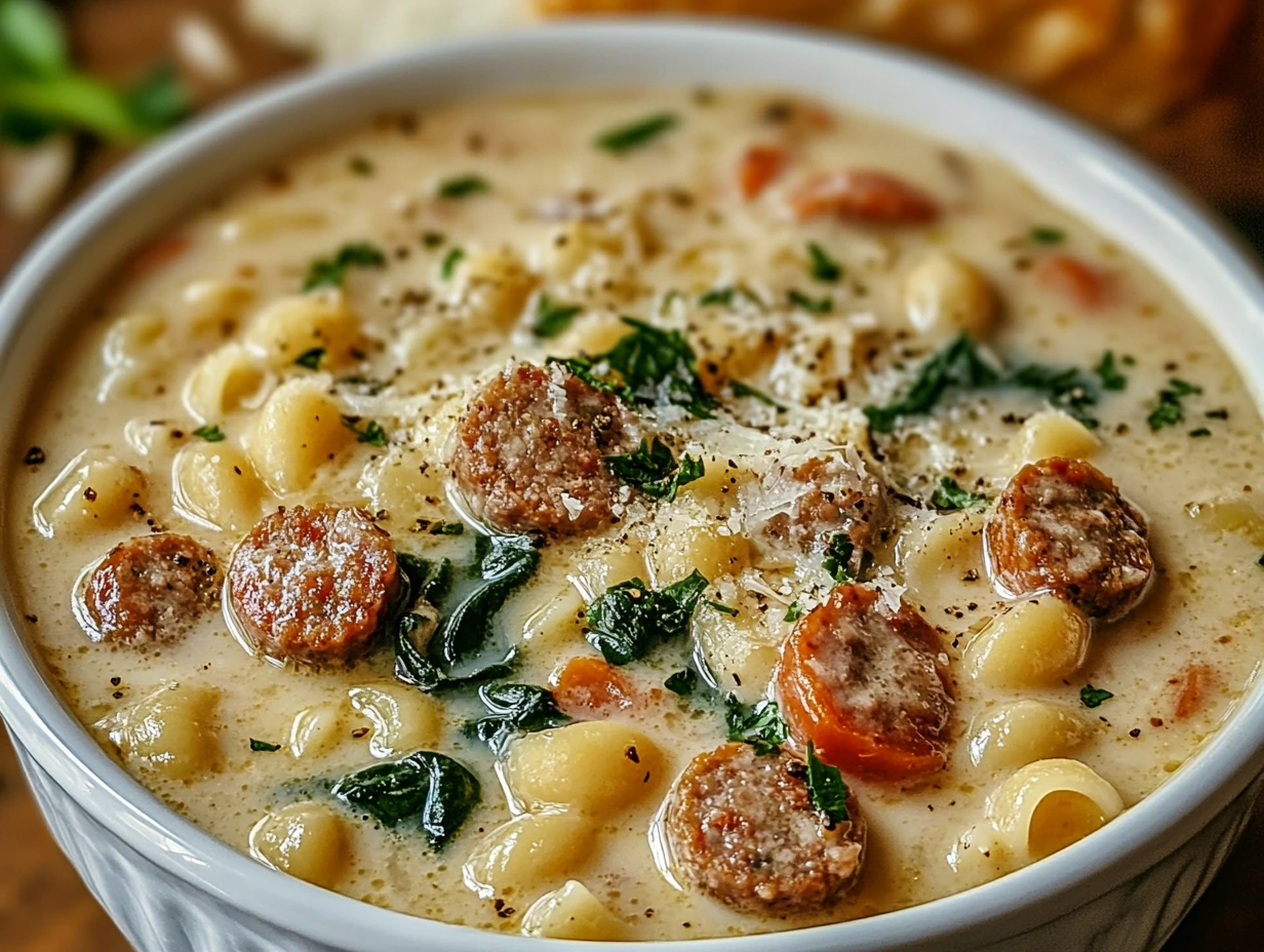 This soup is packed with savory Italian sausage, tender pasta, hearty beans, and fresh spinach, all brought together with a rich, creamy Parmesan broth. It’s like a hug in a bowl! Plus, it’s easy to make, so you can whip it up on a busy weeknight without any hassle.