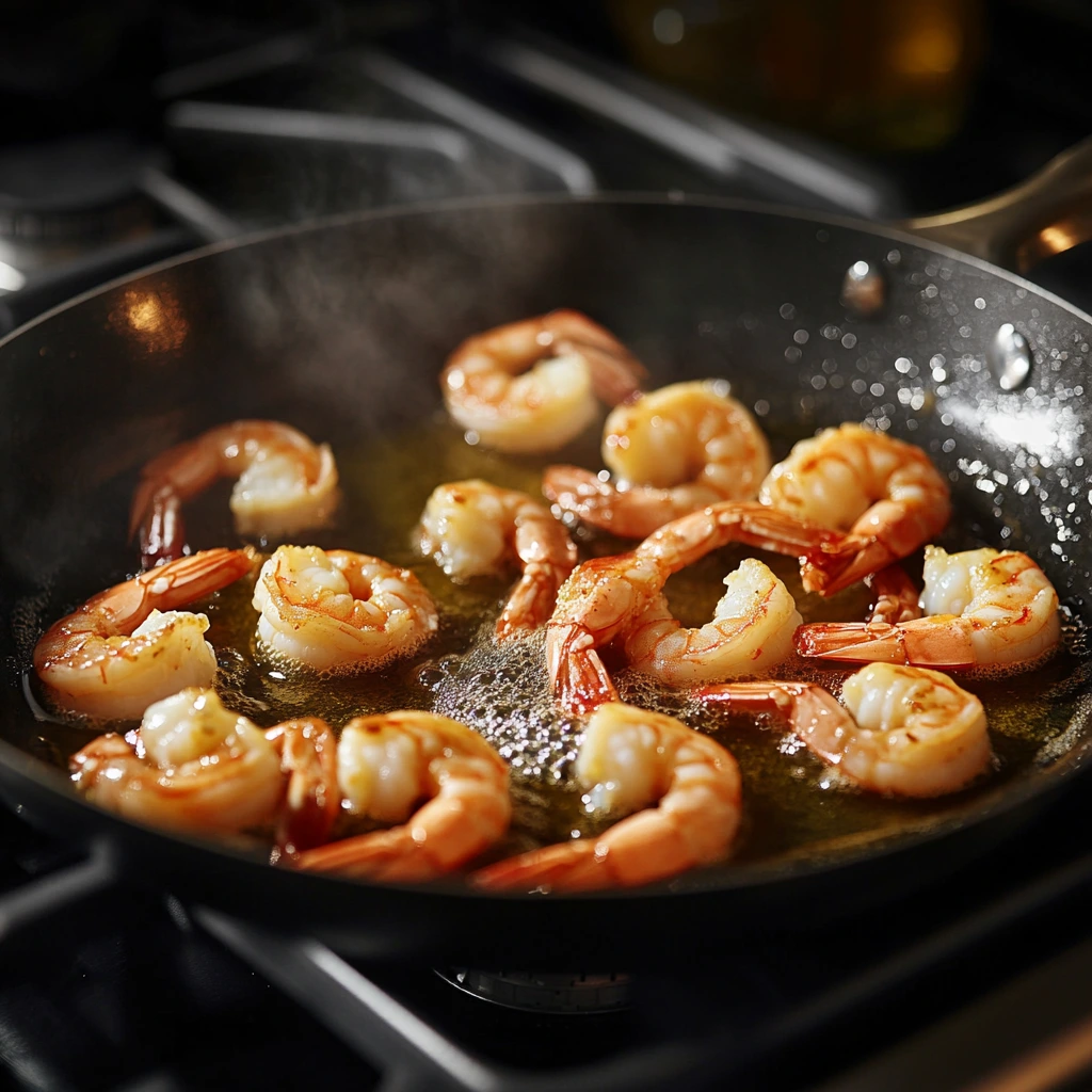 Add the shrimp to the skillet in a single layer. Let them cook for about 1-2 minutes per side until they turn pink and opaque. The shrimp should have a lovely golden sear on the outside, which will add a ton of flavor to the dish. Once done, remove the shrimp from the skillet and set them aside. Don’t worry if you’ve got some browned bits stuck to the pan — that’s going to add even more flavor to your sauce later.